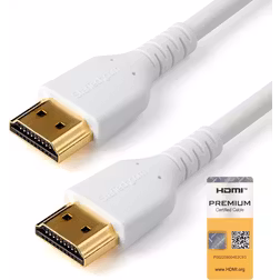 StarTech.com 3ft (1m) Slim HDMI 2.0 Cable, Flexible Premium HDMI Cord with Ethernet, UHD 4K 60Hz HDR10, Durable Aramid Fiber Design with TPE Jacket, White