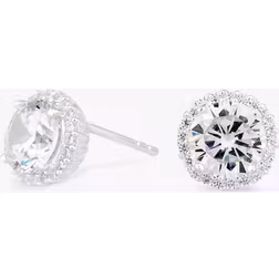 Sterling Silver 925 With Cubic Zirconia Halo Stud Earrings - One Size