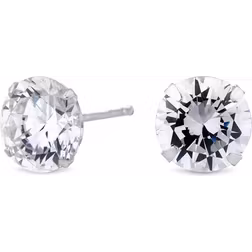 Sterling Silver 925 With Cubic Zirconia 8mm Solitaire Stud Earrings - One Size