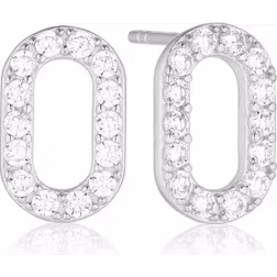 Sif Jakobs Capizza Silver Earrings with White Zirconia - Silver,Clear,White - Length 13mm, width 8mm, thickness 1.3mm