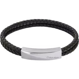 Calvin Klein for man. 35000097 Braided leather bracelet Wrapped & Braided black (OSFA), Casual, Stainless steel