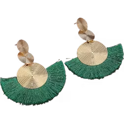 Shein Bohemian Style Geometric Exaggerated Circle Fringe Tassel Drop Earrings - Women