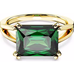 Swarovski Matrix cocktail ring, Rectangular cut, Green, Gold-tone plated