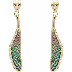 18ct Yellow Gold Diamond Enamel Style & Fashion Dragonfly Wing Stud Earrings D - Yellow Gold