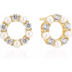 Sif Jakobs Biella Perla Yellow Gold Plated Freshwater Pearl Cubic Zirconia Stud Earrings
