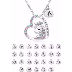 SHEIN 1pc Girls Cute Popular English Initial Letter A-Z Heart Shaped Unicorn Silver Plated Necklace For Kids Birthday Gift For Dating And Daily Life