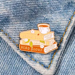 SHEIN Drink Tea And Read Books Enamel Pin Custom Decorative Brooches Ornaments Lapel Bag Badges Jewelry Gifts Pin Christmas Pins Pin For Clothes Bag Charm S