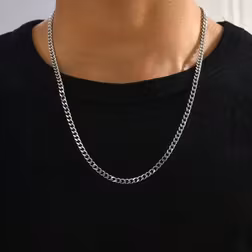 SHEIN 1 Pc Silver For Boys Cut Miami Boy Cuban Link Chain Necklace 4.5mm Chain Teen Necklace