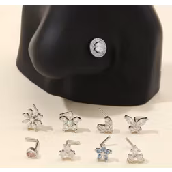 SHEIN 9Pcs Nose Rings Stud L Bone Screw Shaped Nose Ring Flower CZ Snowflake Butterfly Screw Nose Stud Body Piercing Jewelry For Women Men 20G Silver Gold R