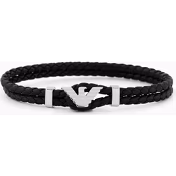 Emporio Armani Men's Black Leather Id Bracelet - Silver