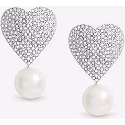 Mood Silver Crystal Heart With Pearl Drop Statement Earrings, Silver, Women - Ilver