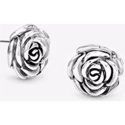 MOOD Antique Silver Floral Stud Earrings - Grey