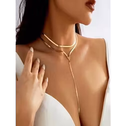 SHEIN 2pcs Jewelry Women's Chunky Necklace Beautiful Neck With Your Fashion Assistant Design Exquisite Fringe Double Neck Snake Bone Necklace Gold Material