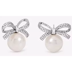 Jon Richard Rhodium Plated Crystal Bow Pearl Earrings - Silver