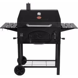 Charcoal BBQ, BBQ Trolley, Air Inlet, Wheels, Warming Rack, Removable Ash Catcher, Lid, Thermometer, Side Table, Enclosed Lid