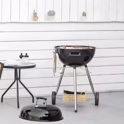 Outsunny Portable Kettle Charcoal Grill BBQ Smoker With Cover - Lid - & Thermometer | TJ Hughes