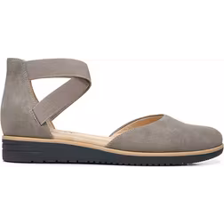 Soul Intro Flat Wedges, Grey Synthetic Nubuck, 6.5W Slip-On, Round Toe, Ankle Strap