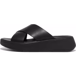 Fitflop F-Mode Leather Flatform Cross Slides - Black