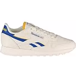 Reebok Men Classic Leather Sneaker, Chalk/Vector Blue/Collegiate Gold, 2.5