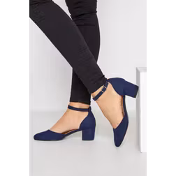 LTS Navy Blue Block Heel Court Shoes In Standard Fit > Tall Women's Heels