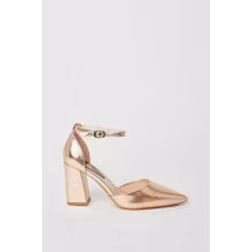 Dorothy Perkins Blanche Ankle Strap Pointed High Block Heel Court Shoes Rose Gold