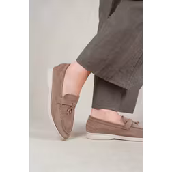 Where's That From Women's 'Pegasus' Wide Fit Slip On Trim Loafers With Accessory Detailing in Khaki | Size: 5E