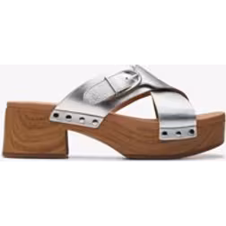 Clarks Women's Sivanne Walk Silver Leather Heeled Sandals in Metallics | Size: 5-Standard Fit