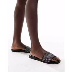 New Look Women's Black Faux Leather Raffia Strap Sandals Vegan - UK 9