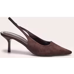 PrettyLittleThing Faux Suede Point Toe Sling Back Mid Heeled Courts - Chocolate