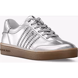 MK Scotty Embellished Metallic Leather Trainers - Silver - Michael Kors - UK 6