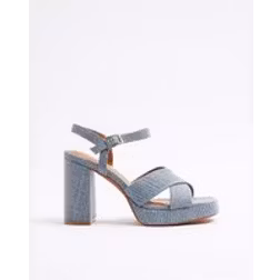 River Island Womens Platform Heeled Sandals - Blue Denim