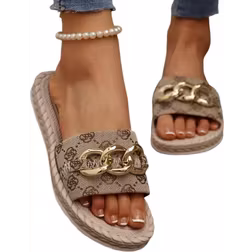 Shein Women's Summer Sandals And Slippers: Rope Sole Slippers, Metal Buckle Decor Slippers, Vacation Style Sandals, Comfortable And Easy Slip-On Sandals, Thick-Sole Beach Sandals, Printed House Slippers