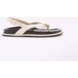 River Island Womens Cream Gold Detail Toe Thong Footbed Sandals - 7