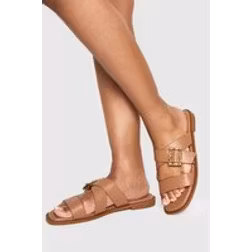 boohoo Womens Buckle Detail Cross Strap Sandals - Brown