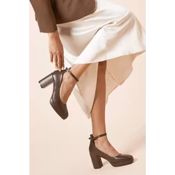 Dorothy Perkins Womens Vanessa Faux Leather Platform Ankle Strap High Block Heel Court Shoes - Chocolate