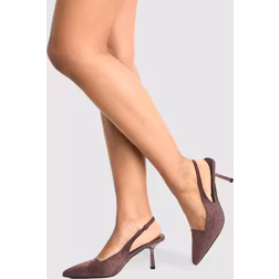 boohoo Women's Low Stiletto Slingback Court Shoe in Chocolate | Size: 5