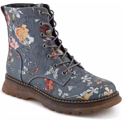 Pavers Lace-Up Floral Boots - Grey