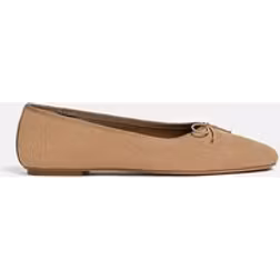 Stradivarius Split Suede Ballet Flats With Bow - Beige