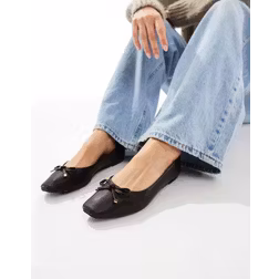New Look Faux Leather Square Toe Ballerina Flats Vegan - Brown