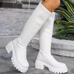 SHEIN Women's Thick Sole Over-The-Knee Boots, Fashion High-End Autumn/Winter Leather Riding Boots,White Boots