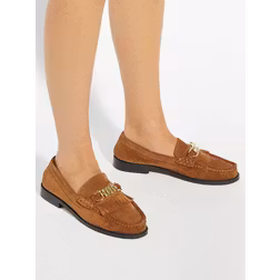 Dune London Granules Suede Gold Chain Trim Fringed Loafers, Dark Tan