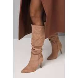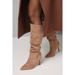 Wallis Faux Suede Ruche High Stiletto Heel Knee Boots - Beige