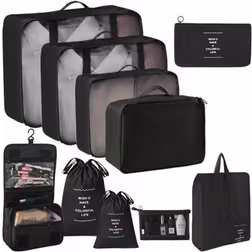SHEIN 10pcs/1set Travel Organizer Bag, Toiletry Bag, Storage Pouch, Minimalist Polyester Luggage Packing Cubes, Suitable For Travel Accessories, Essentials,