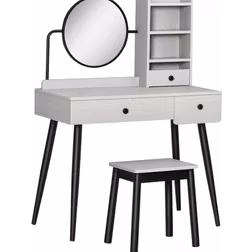 Material: Wood, Particle Board, Glass, Colour: Grey,Storage Solutions: Shelves, Retractable Drawers