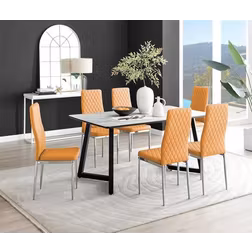 Material: Leather, Colour: Yellow, No. of Chairs: 6