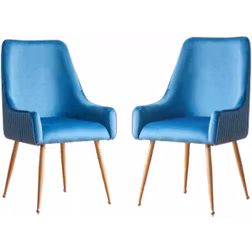 Set of 2 Soho LUX Velvet Dining Chairs Upholstered for Kitchen Dining Room - Blue