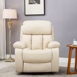 (Cream) Chester Electric Rise Heated Leather Massage Power Recliner Chair Sofa Armchair