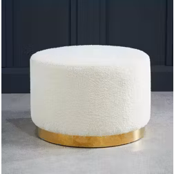 LPD Lara Large Pouffe - White Bouclé Elegance With Chic Gold Frame W 60 X L 0 X H 40 Cm - One Size