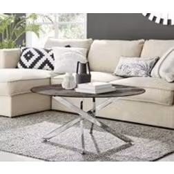 Novara Round Marble Effect Glass Top Coffee Table With Silver Metal Starburst Legs - Grey - One Size