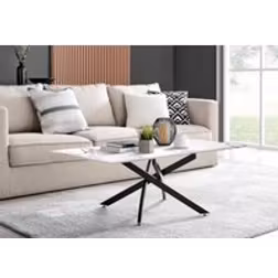 Leonardo Rectangular Marble Effect Glass Top Coffee Table With Black Metal Starburst Legs - White - One Size
